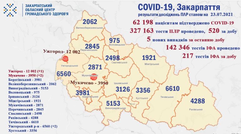 Вакцинація вiд СOVID-19 в Закарпатській області за 22 липня 2021 року