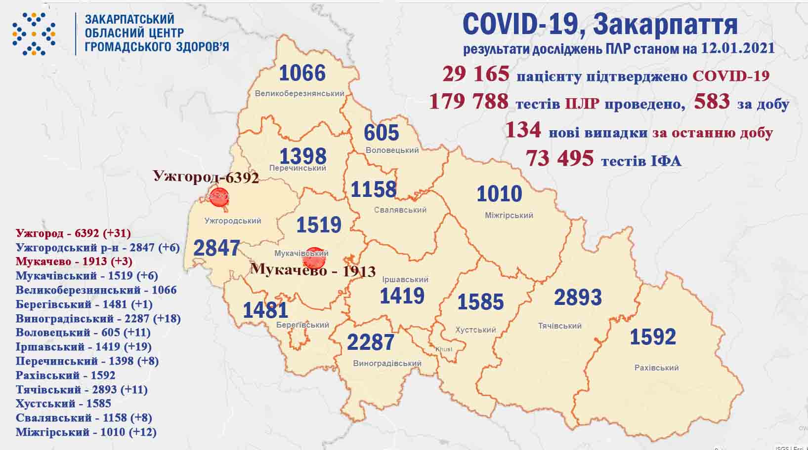 - від початку пандемії 29 165 закарпатцям встановлено діагноз COVID-19, із яких 2 247 – медики та 1497 – діти ;