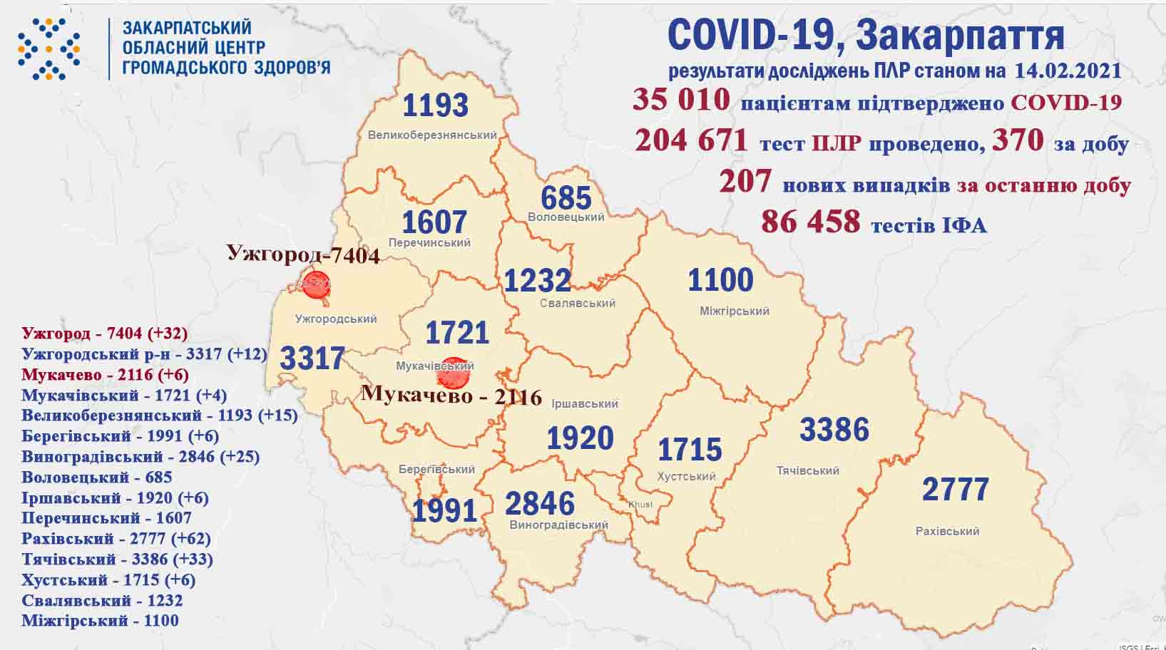 - від початку пандемії 35 010 закарпатцям встановлено діагноз COVID-19, із яких 2585 – медики та 1770 діти ;