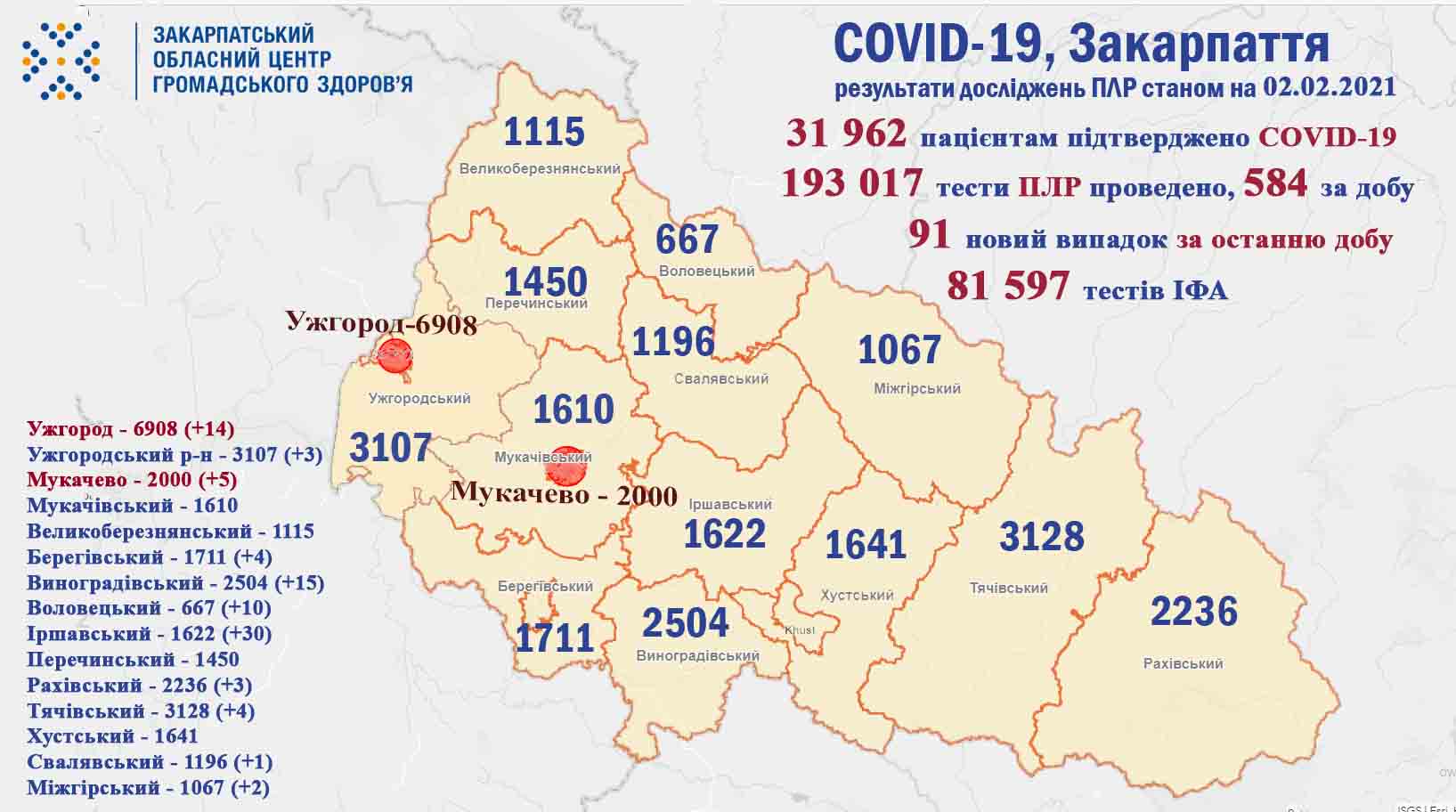 - від початку пандемії 31 962 закарпатцям встановлено діагноз COVID-19, із яких 2407 – медики та 1610 діти ;
