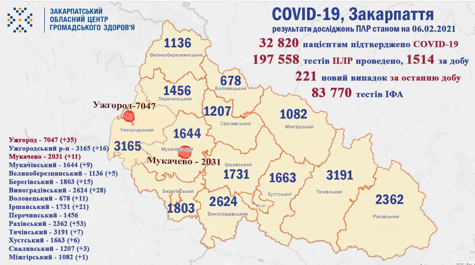 - від початку пандемії 32820 закарпатцям встановлено діагноз COVID-19, із яких 2467 – медики та 1647 діти ;