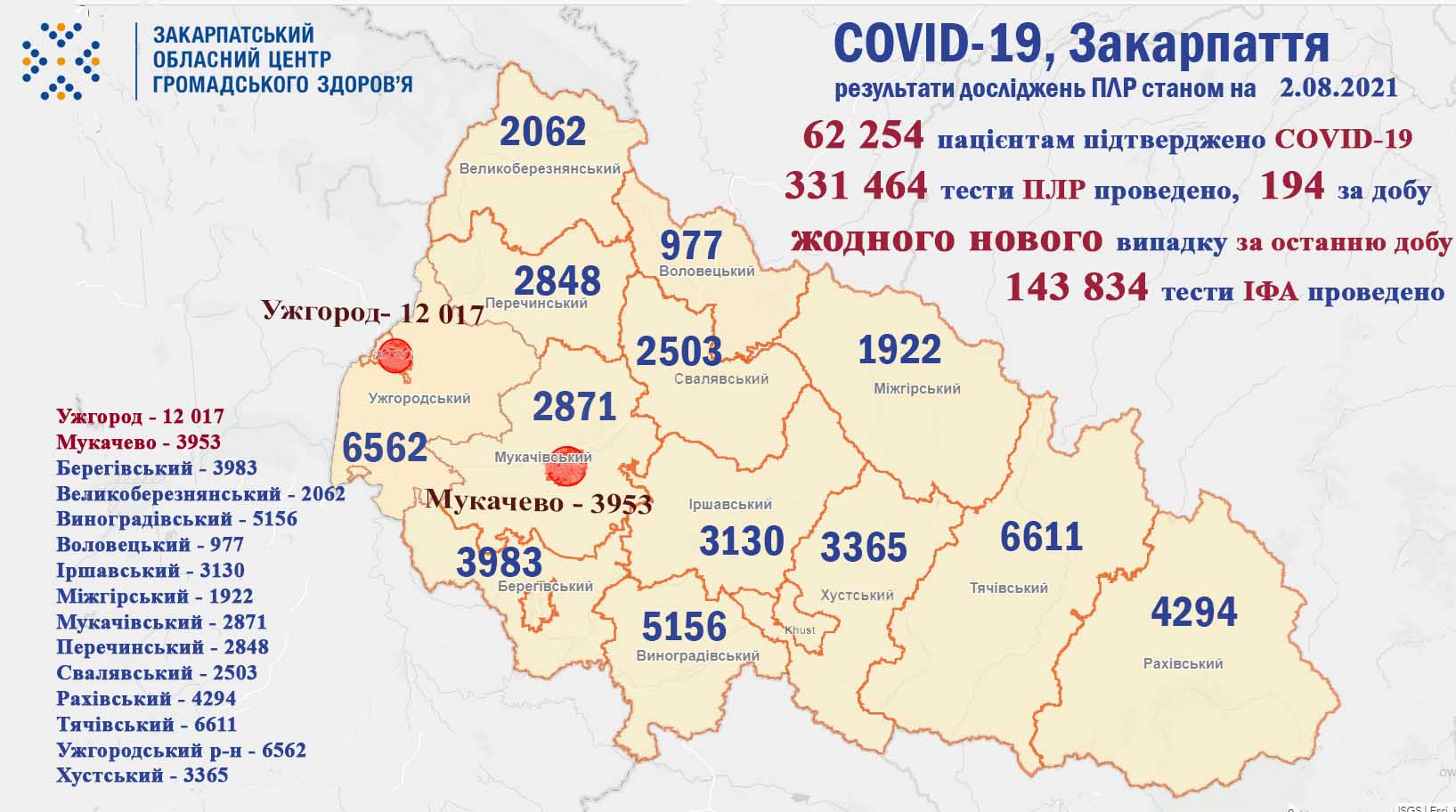 Підготовлено за інформацією департаменту охорони здоров’я Закарпатської ОДА та ДУ «Закарпатський обласний лабораторний центр МОЗ України»