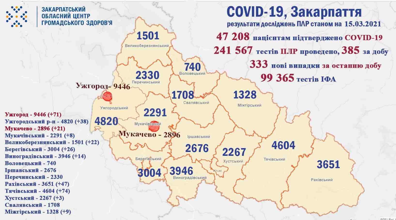 - від початку пандемії 47 208 закарпатцям встановлено діагноз COVID-19, із яких 3105 – медики та 2403 – діти ;