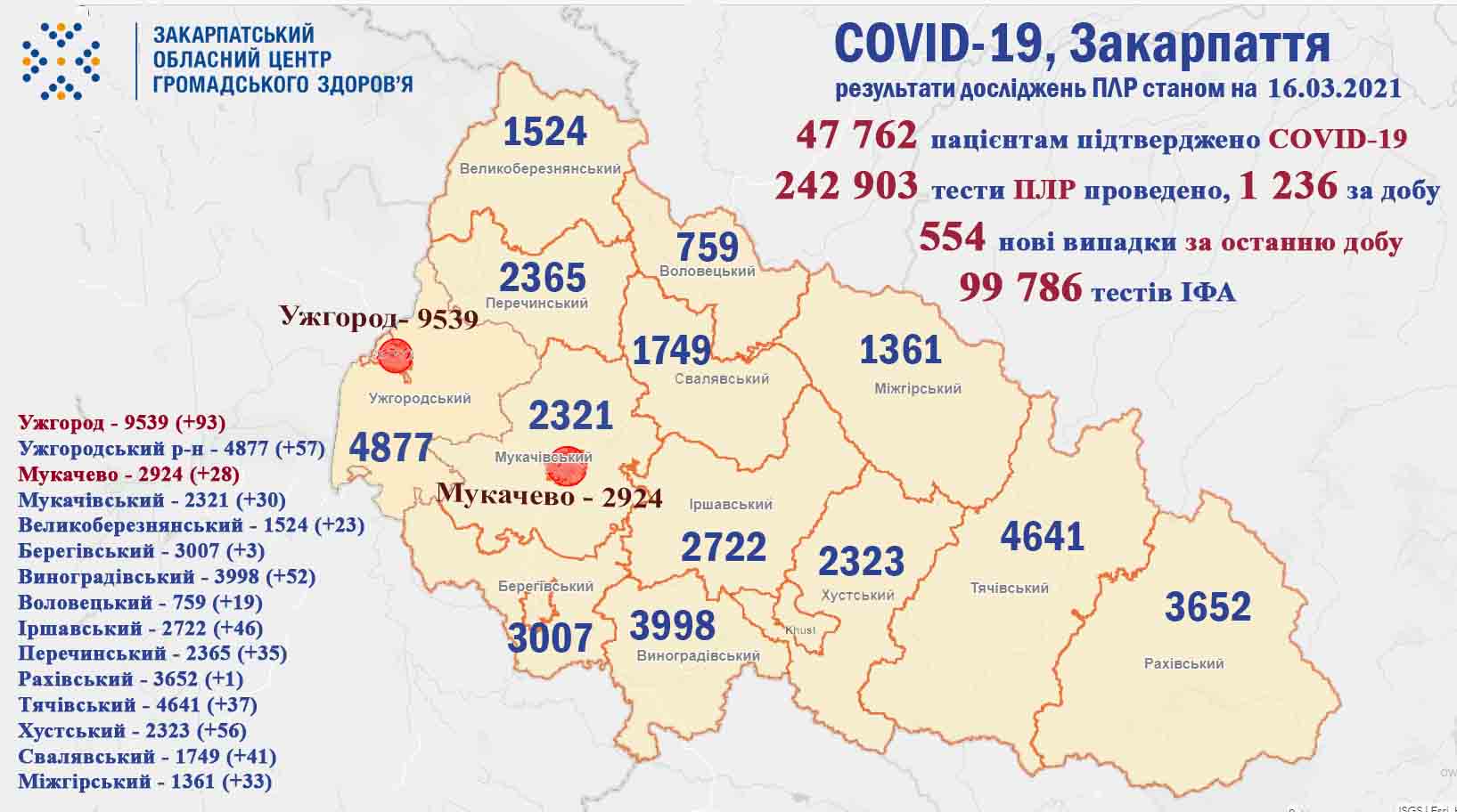 - від початку пандемії 47 762 закарпатцям встановлено діагноз COVID-19, із яких 3127 – медики та 2429 – діти ;