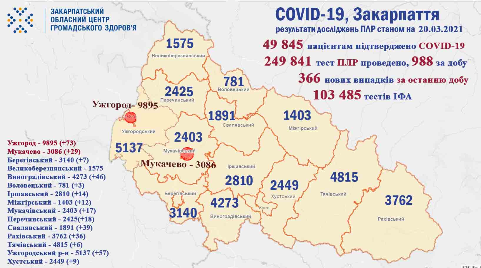 - від початку пандемії 49 845 закарпатцям встановлено діагноз COVID-19, із яких 3214 – медики та 2514 – діти ;