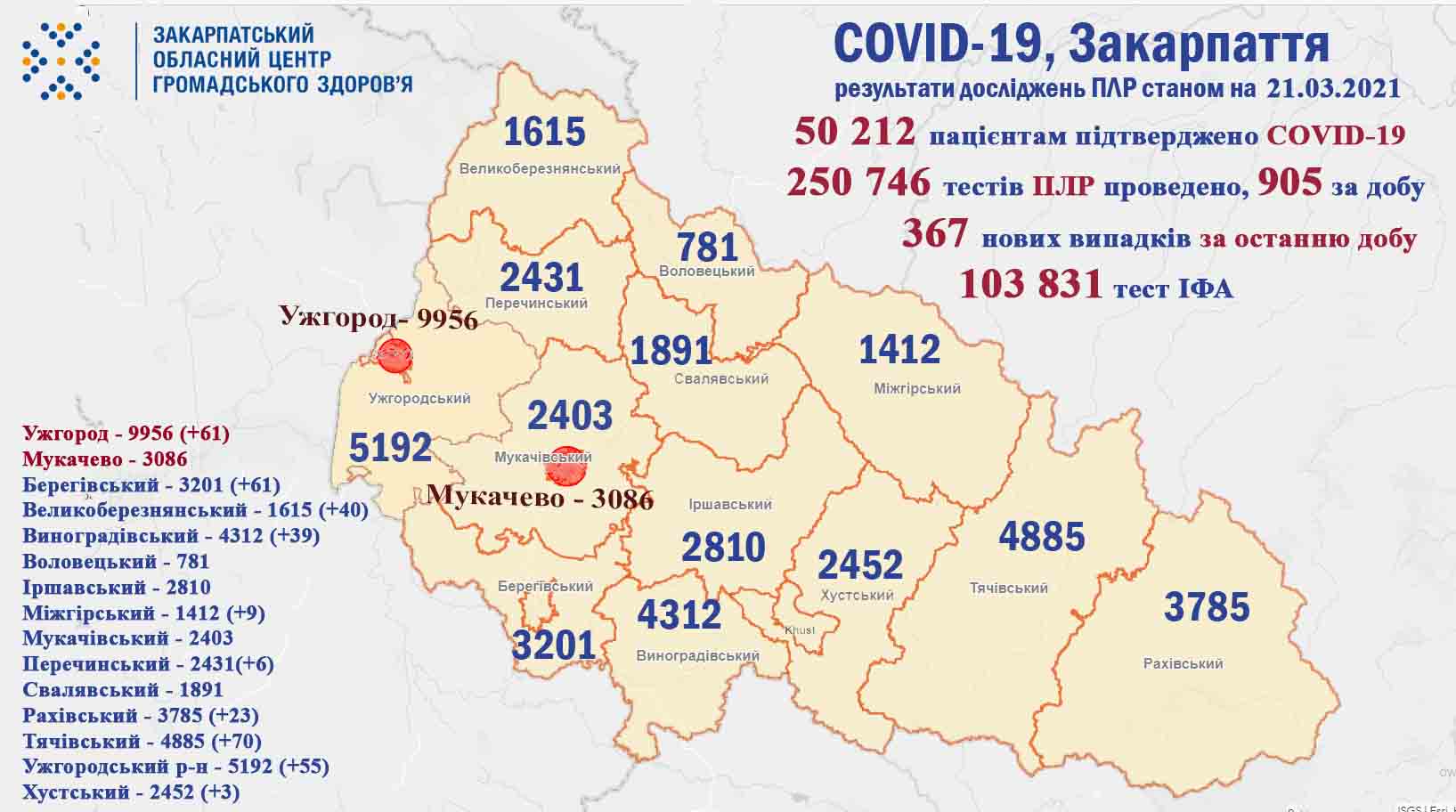 - від початку пандемії 50212 закарпатцям встановлено діагноз COVID-19, із яких 3221 – медики та 2534 – діти ;