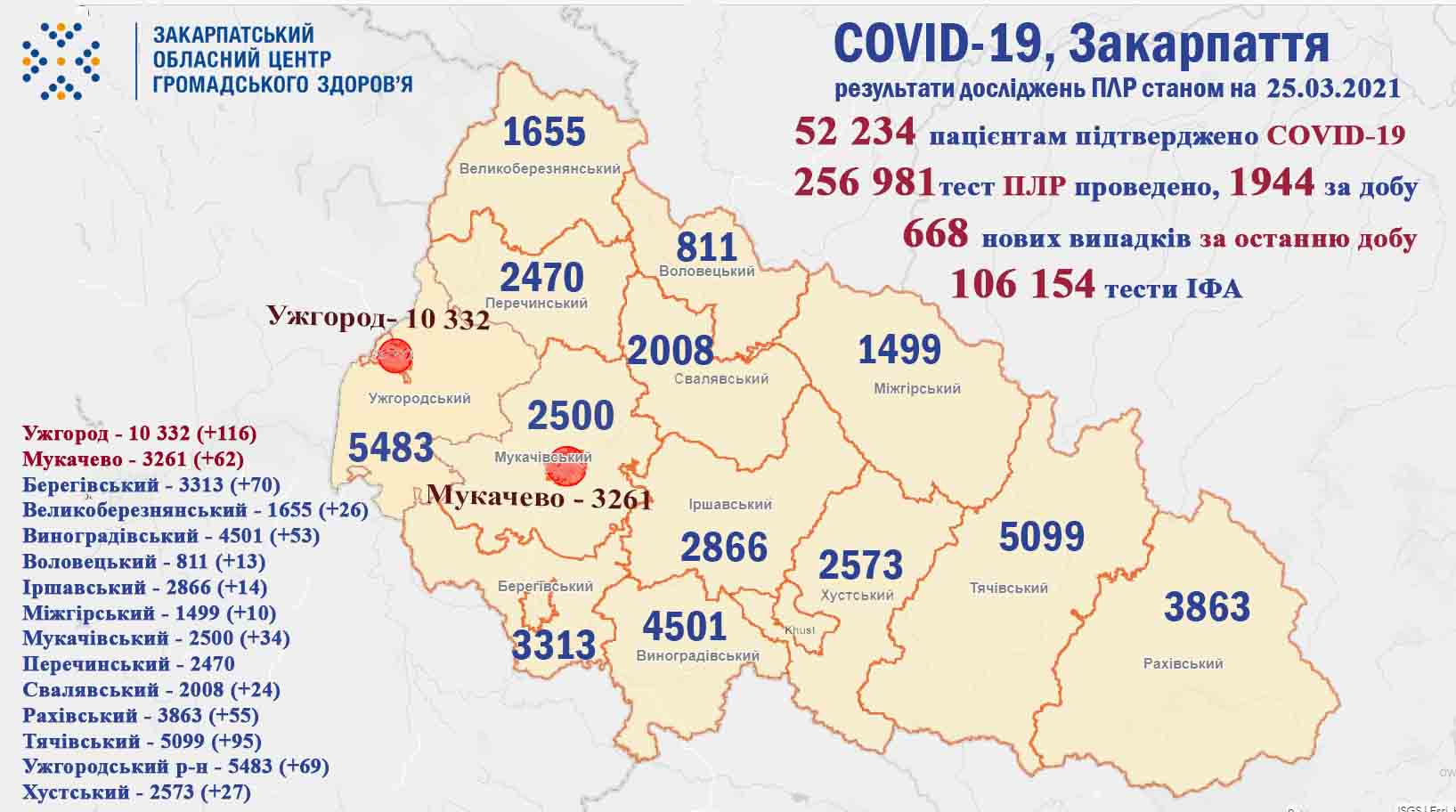 - від початку пандемії 52 234 закарпатцям встановлено діагноз COVID-19, із яких 3292 – медики та 2602 – діти ;