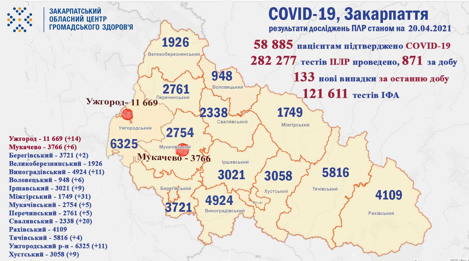 Підготовлено за інформацією департаменту охорони здоров’я Закарпатської ОДА та ДУ «Закарпатський обласний лабораторний центр МОЗ України»