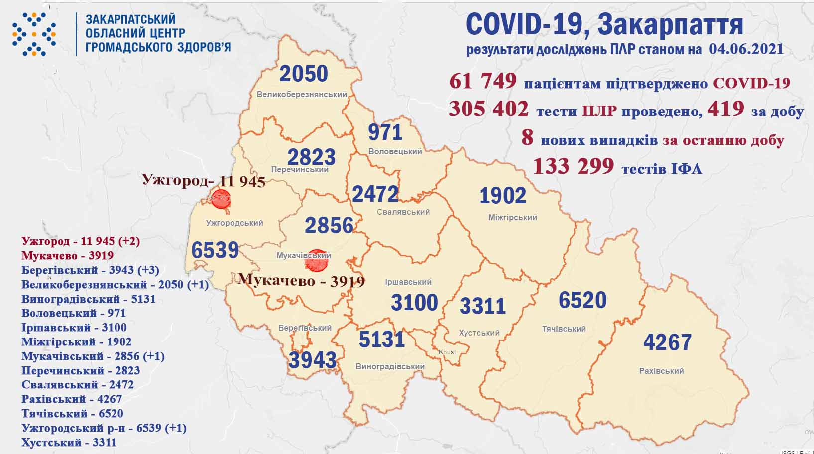 Підготовлено за інформацією департаменту охорони здоров’я Закарпатської ОДА та ДУ «Закарпатський обласний лабораторний центр МОЗ України»