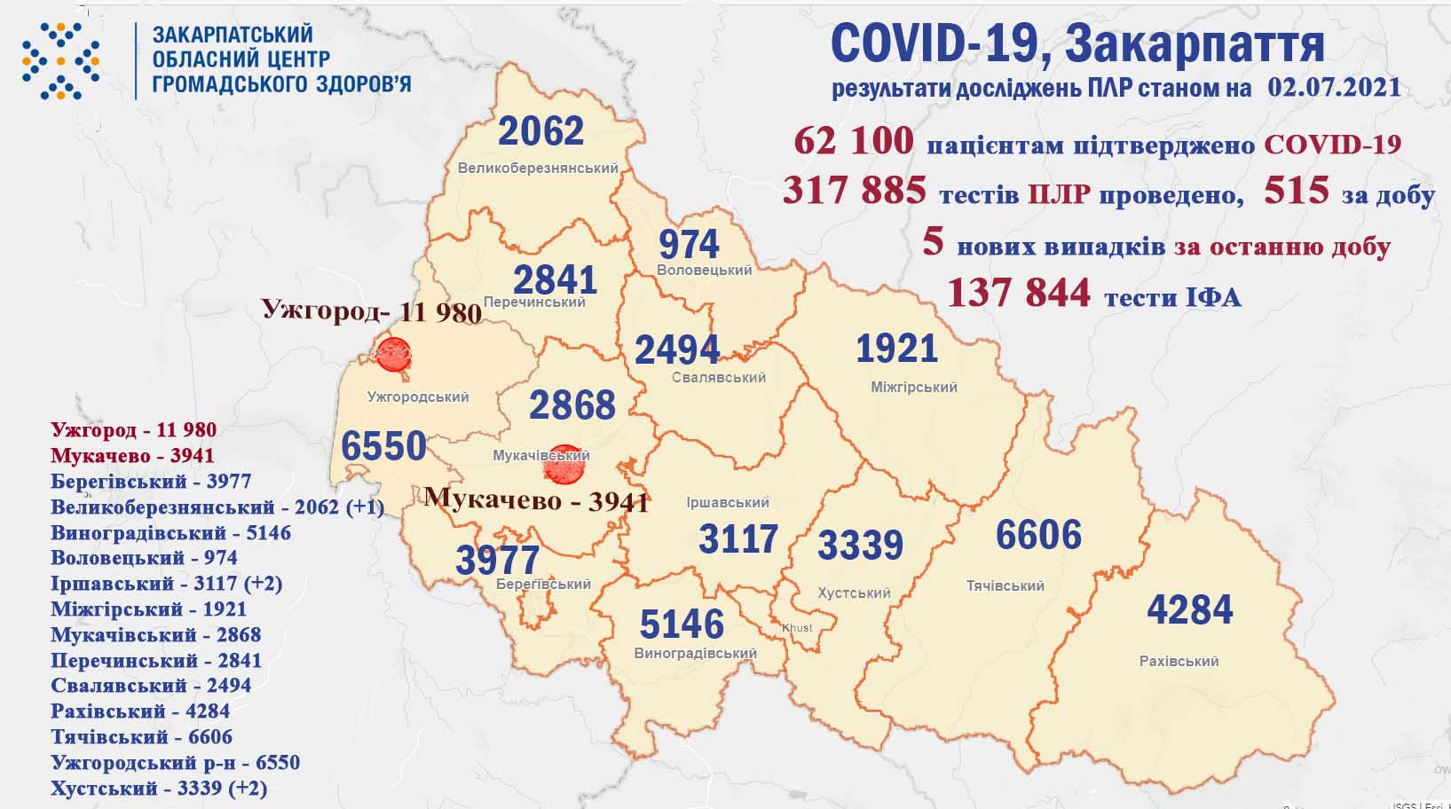 Підготовлено за інформацією департаменту охорони здоров’я Закарпатської ОДА та ДУ «Закарпатський обласний лабораторний центр МОЗ України»
