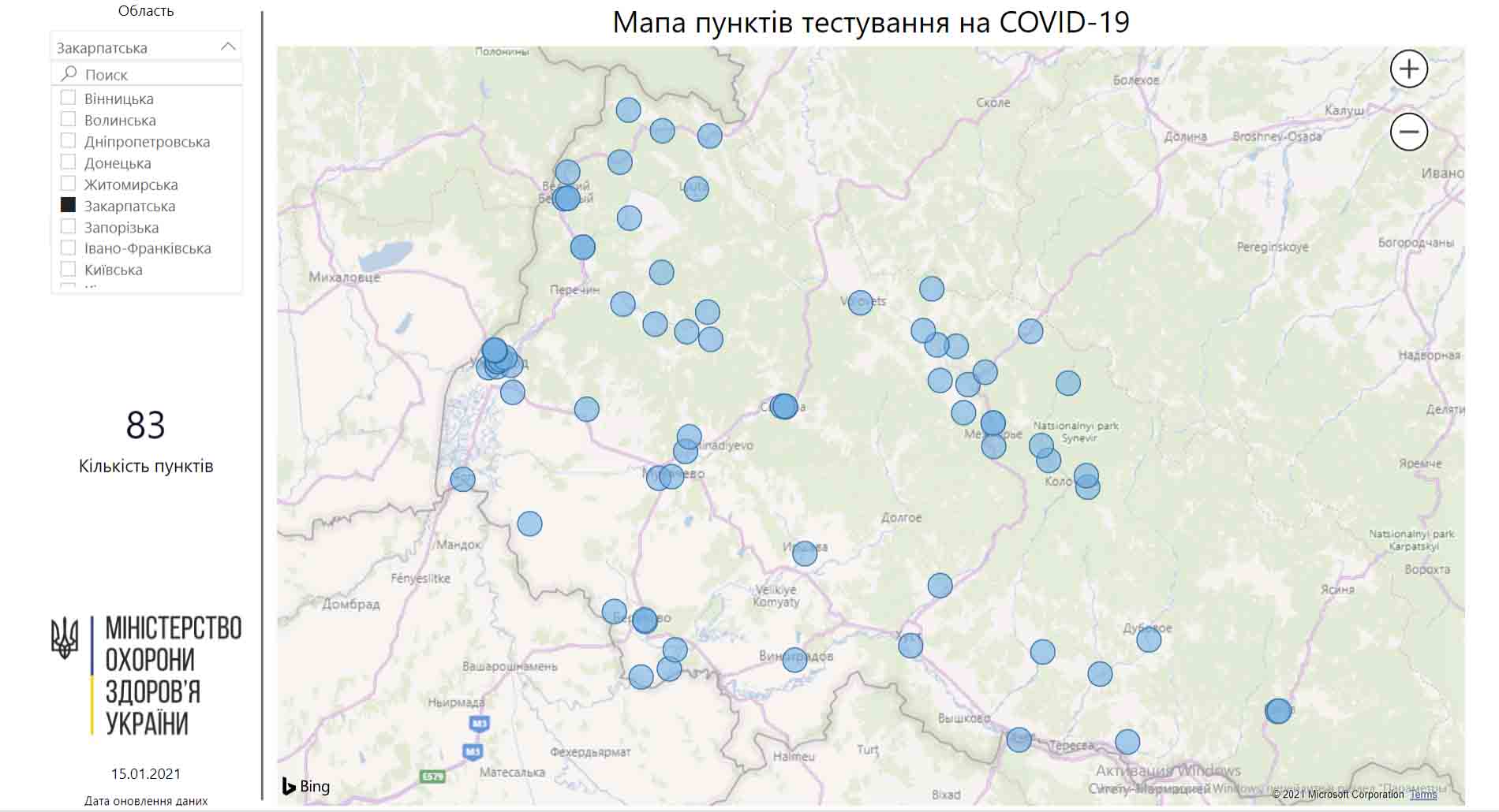 Адреси забору пунтів біоматеріалів на COVID-19: