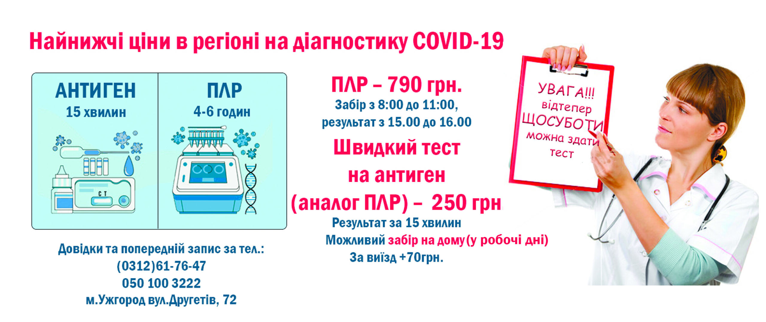 Увага! Найнижчі ціни в регіоні на діагностику COVID-19