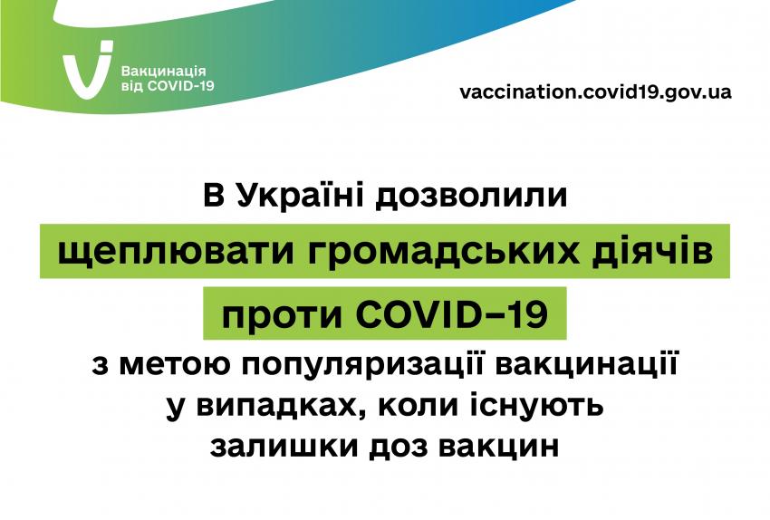 З метою зниження ризиків недовикористання вакцини з вже відкритих флаконів, згідно з наказом, громадських діячів, діячів культури та спорту, лідерів релігійних спільнот, тощо рекомендовано вакцинувати у випадках, коли під час вакцинальної сесії проти COVID-19: