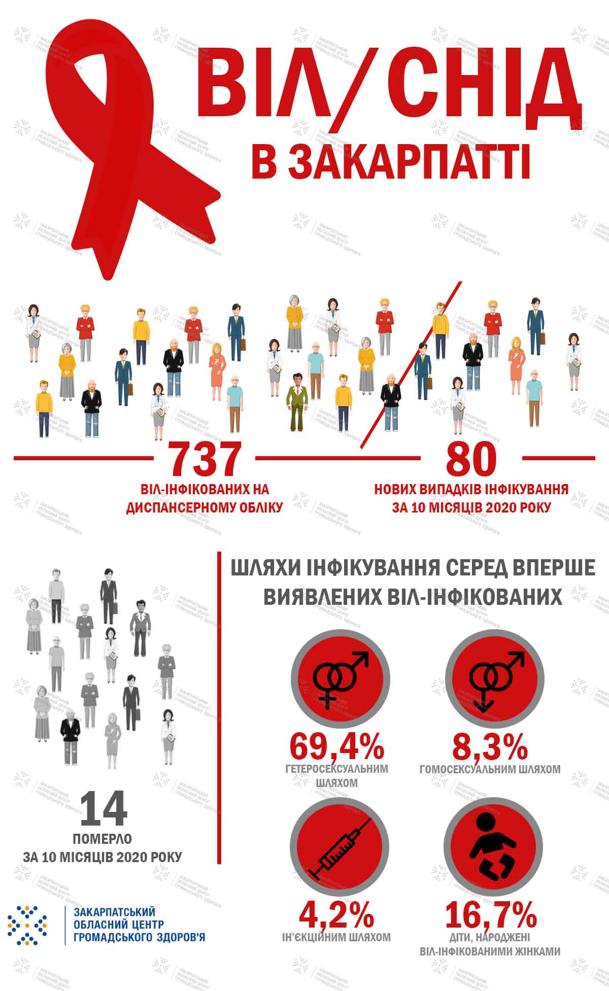 – на диспансерному обліку перебуває 737 ВІЛ-інфікованих осіб, із них 287 – хворі на СНІД
